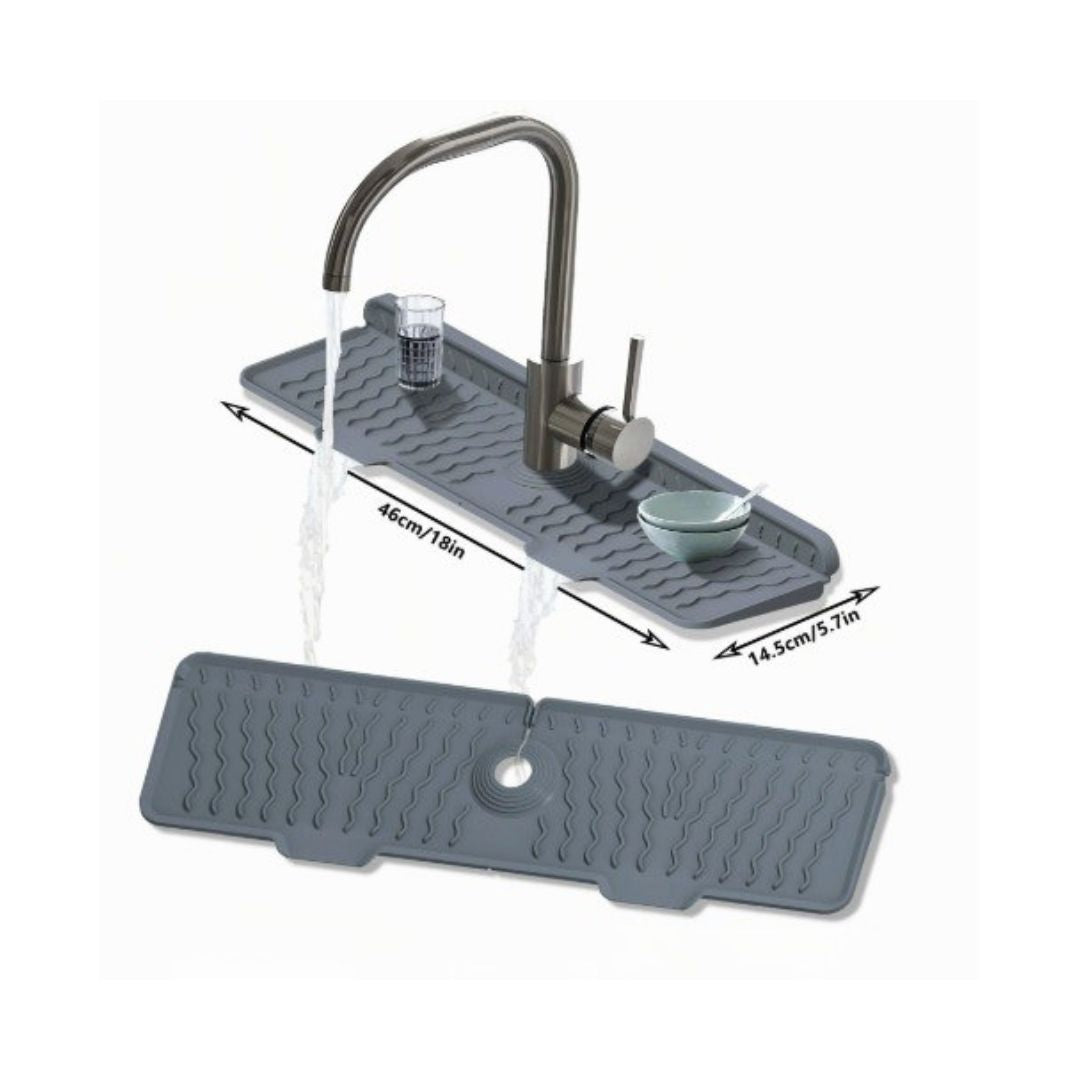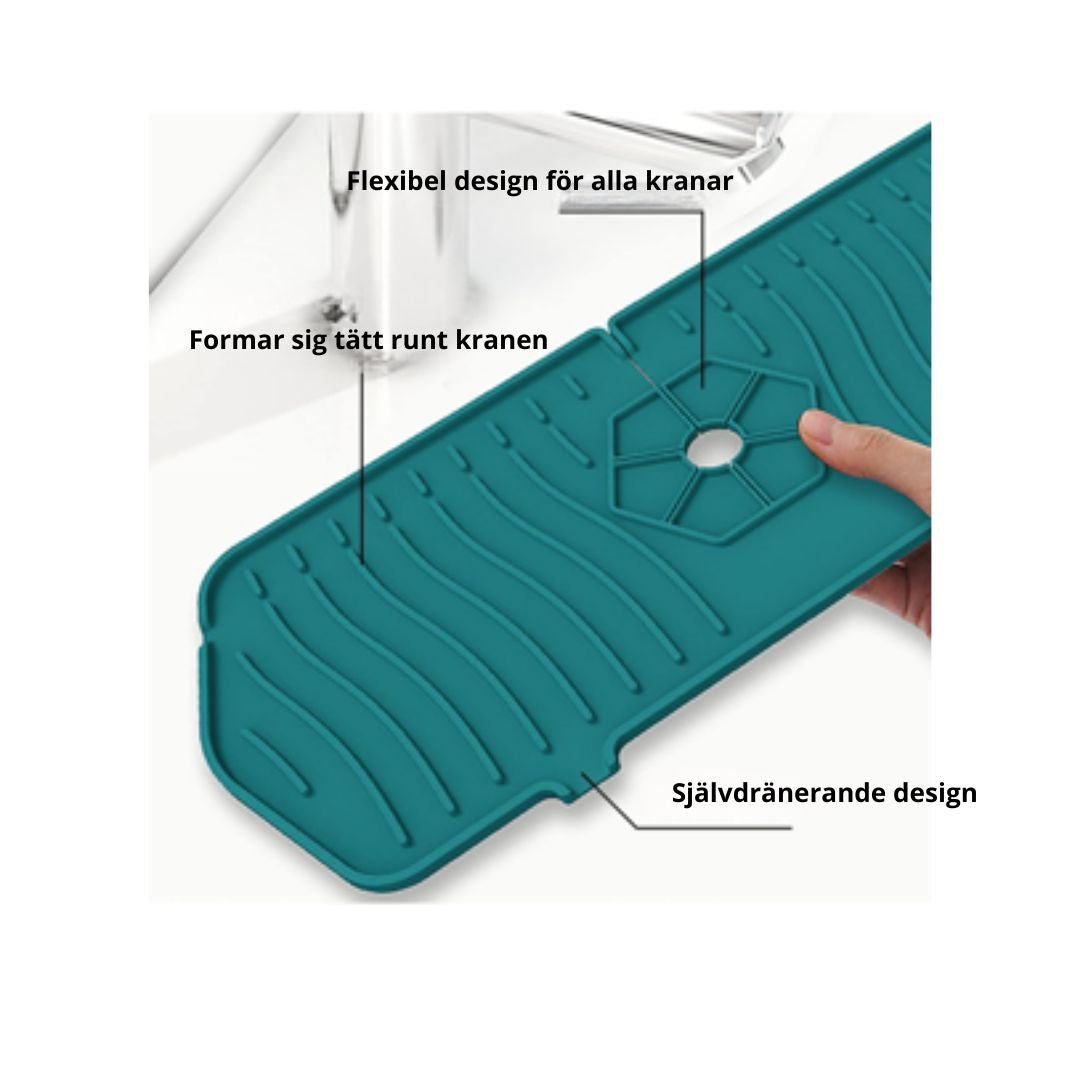 TorrBänk är en flexibel silikonmatta som placeras runt kranen. Den: